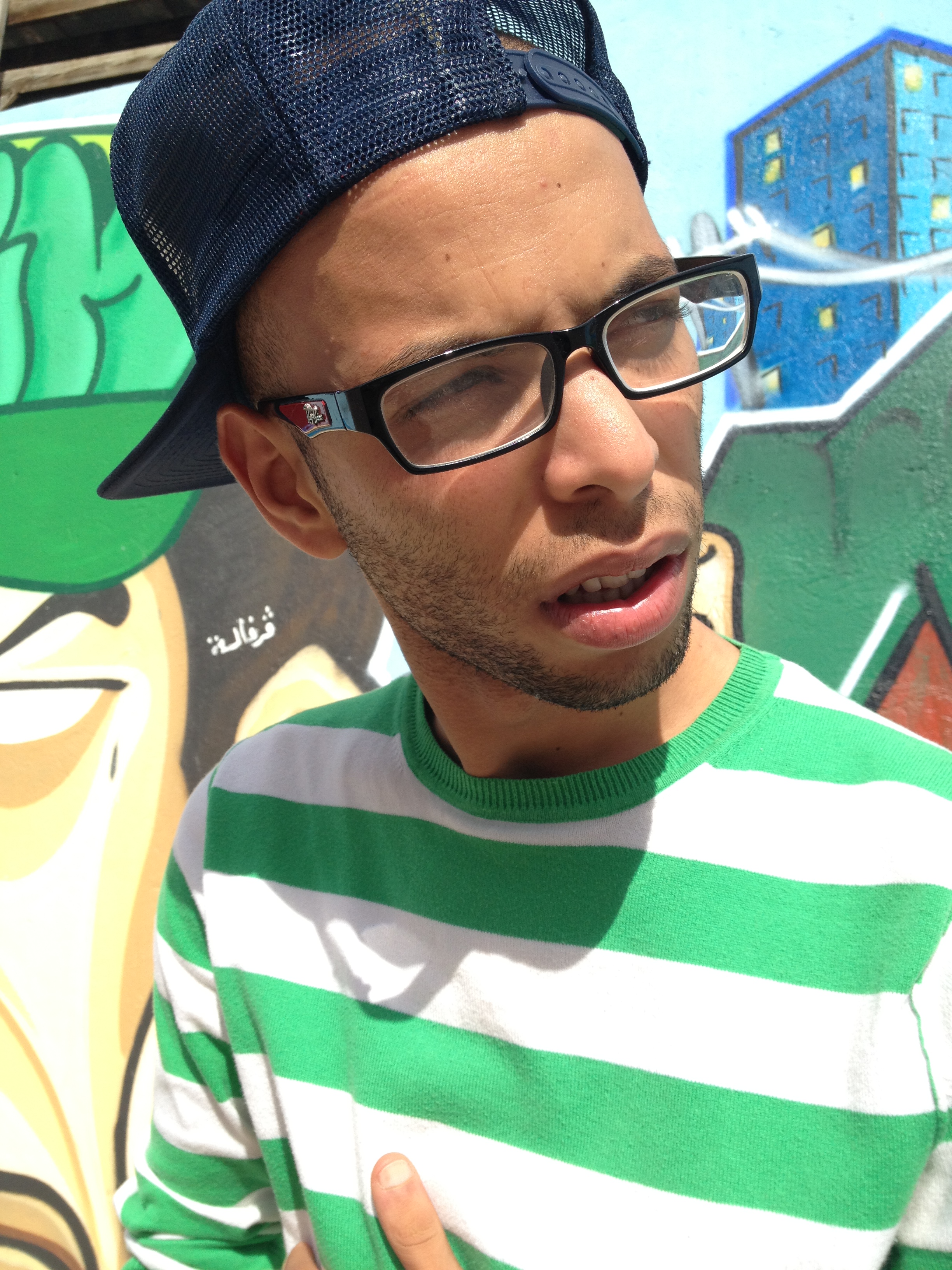 My cousin had brought me a cassette of a popular band “IAM” from France. I was 7 and I thought that “ayam” was a particular style of music. In 2-3 years I understood that there is actually rap. I started read hip-hop in my own neighborhood. Later I learned that there are other musicians in Tunisia. There are the guys involved in break-dance and graffiti. All that we were doing undeground.