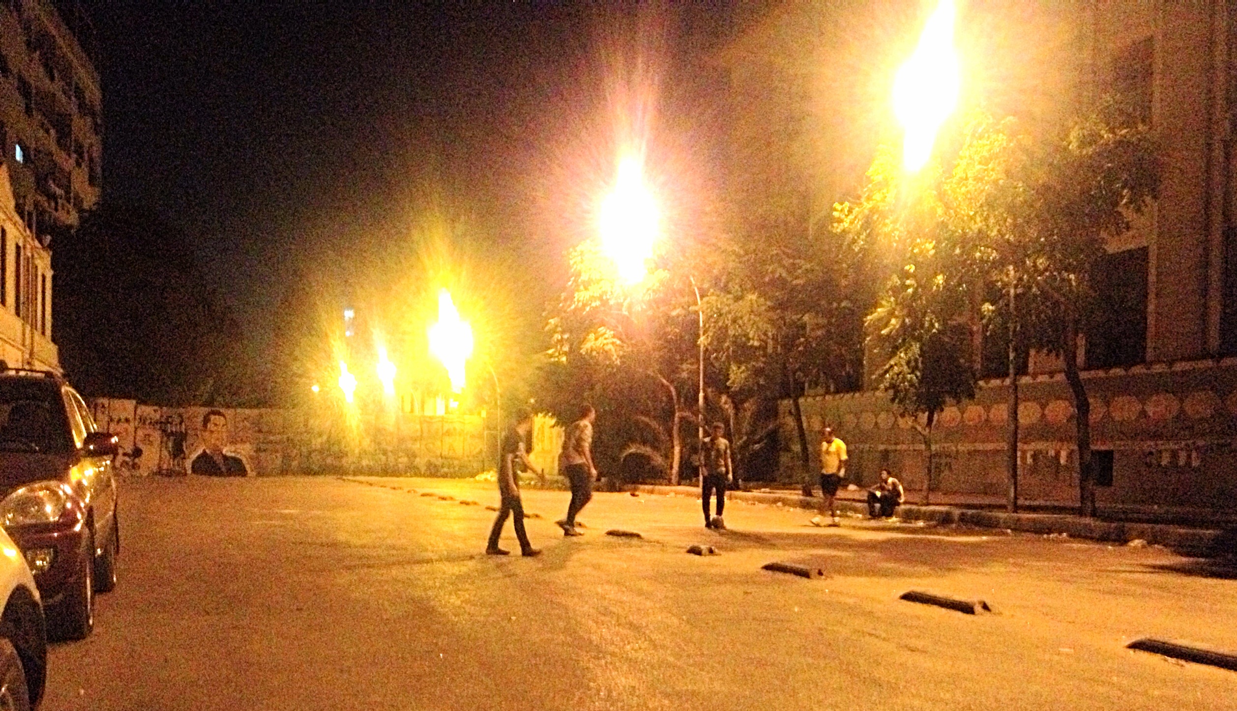 Cairo. The main roads are blocked by military equipment. Midnight. The curfew has already begun long since, and the city is forbidden to move. 50 metres from the Ministry of Internal Affairs, teenagers are playing football. In a makeshift street café nearby, among police dressed in civilian clothes, sit those who call themselves revolutionaries: human rights advocates, lawyers, social activists, artists involved in politics. Elsewhere they would be called ‘civil society’. It is said that at this location (Mohammed Mahmud street), during clashes with the police and the Muslim Brotherhood over the last two years, a lot of activists were killed.